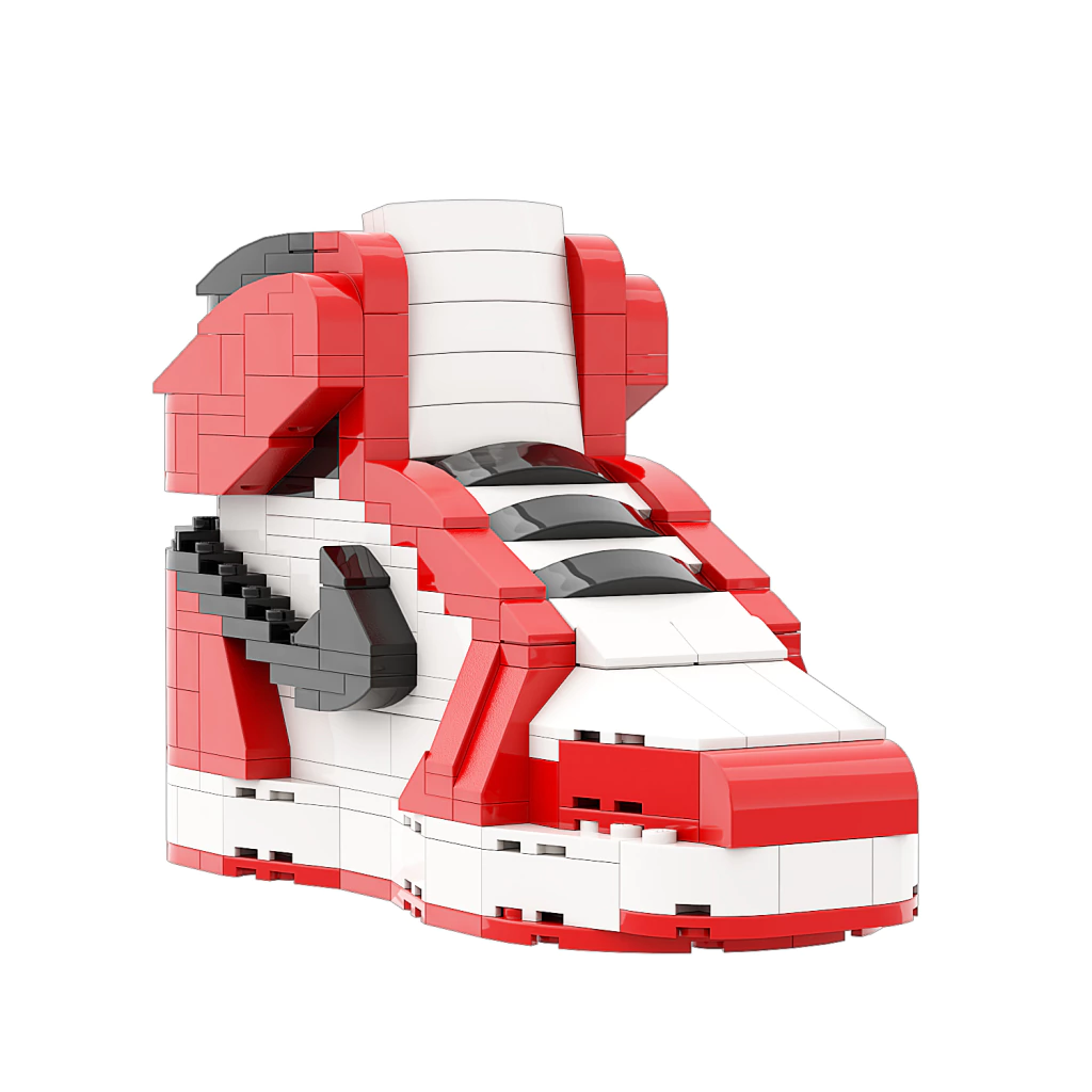 Esta réplica en ladrillos tipo LEGO captura la esencia del clásico original con sus paneles rojos vibrantes, swoosh negro y detalles que evocan la energía de los 80. Es una pieza esencial para coleccionistas, fanáticos del básquet y amantes del diseño atemporal.