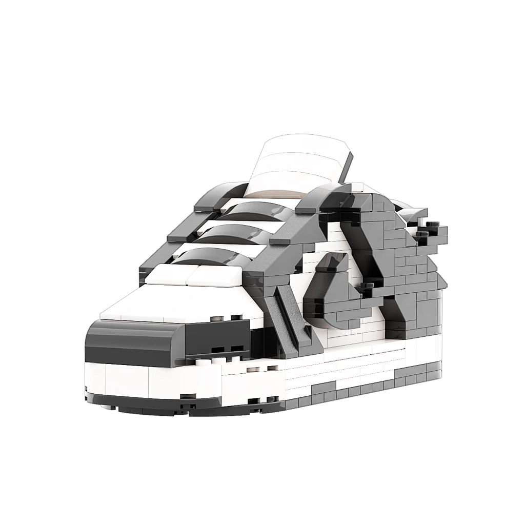 Debutando el 10 de marzo de 2021 bajo el código DD1391-100, las Nike Dunk Low “Panda” se convirtieron rápidamente en un fenómeno mundial gracias a su diseño simple, limpio y versátil. Esta réplica en ladrillos tipo LEGO recrea con detalle una de las siluetas más populares de la última década.